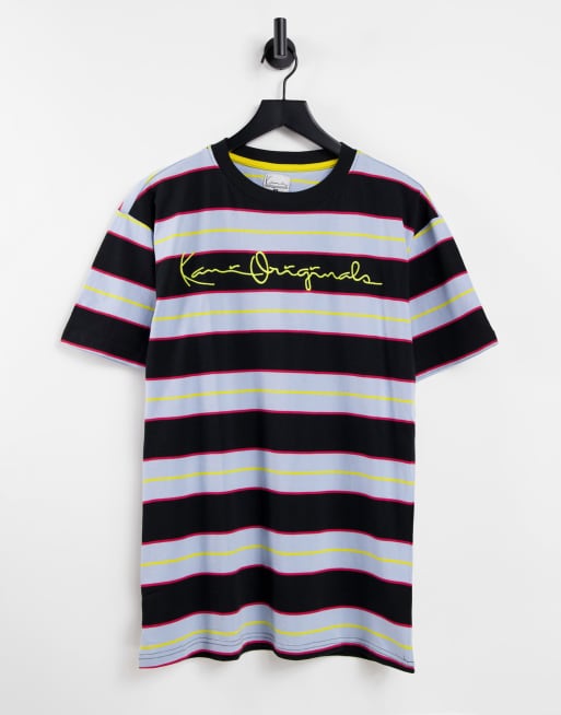 Karl Kani – Originals – Czarno-niebieski T-shirt w poziome paski