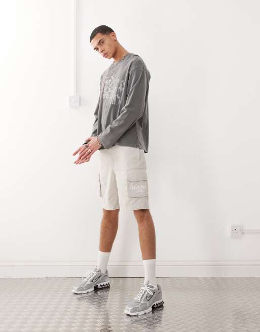 Karl Kani – Szorty bojówki w kolorze złamanej bieli z efektem sprania w stylu retro