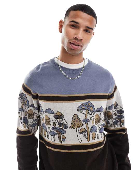 Kavu – Highline – Kolorowy sweter w żakardowy wzór z motywem grzybów