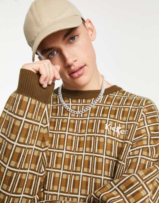 Kickers – Brązowy dzianinowy sweter w kratę