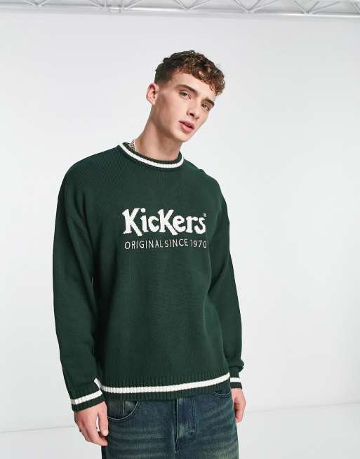 Kickers – Ciemnozielony dzianinowy sweter z logo