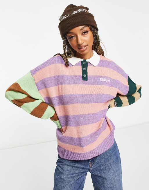 Kickers – Kolorowy luźny sweter dzianinowy w paski