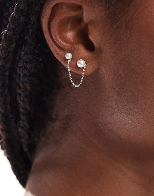 Kingsley Ryan – Kolczyk ze srebra wysokiej próby z łańcuszkiem i dwoma perełkami