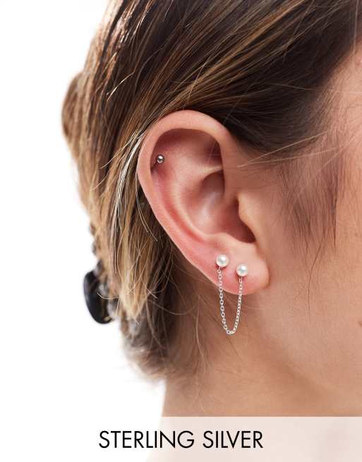 Kingsley Ryan – Kolczyki wkrętki ze srebra wysokiej próby z perłami i łańcuszkami