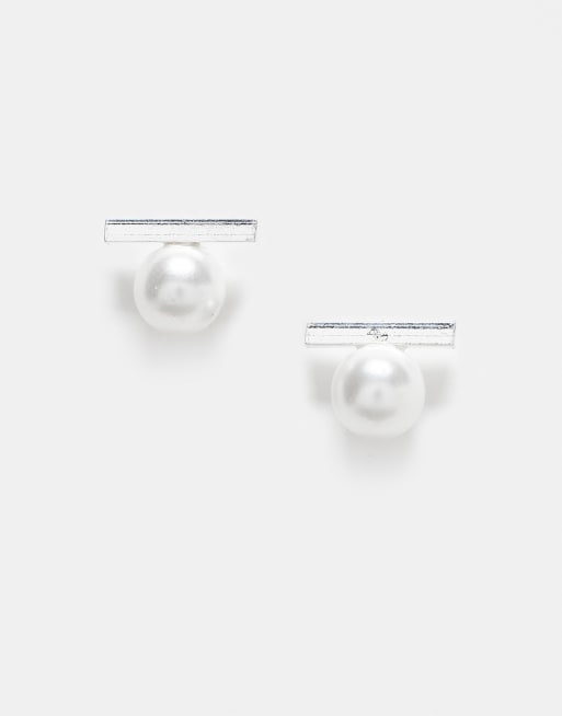 Kingsley Ryan – Kolczyki wkrętki ze srebra wysokiej próby z perełkami i sztabką