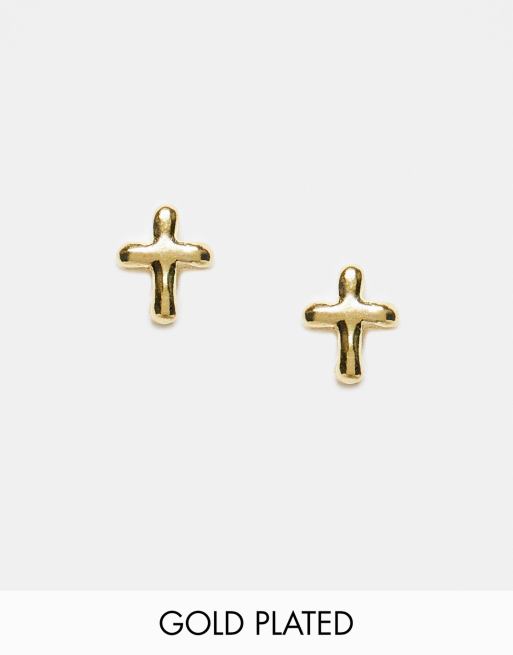 Kingsley Ryan – Małe pozłacane kolczyki-wkrętki w kształcie krzyża