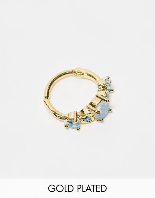 Kingsley Ryan – Platerowany złotem kolczyk clicker do helixa z kryształkiem w kolorze opalu i akwamaryny