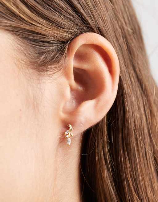 Kingsley Ryan – Pozłacane kolczyki-wkrętki w kształcie liści z kryształkami