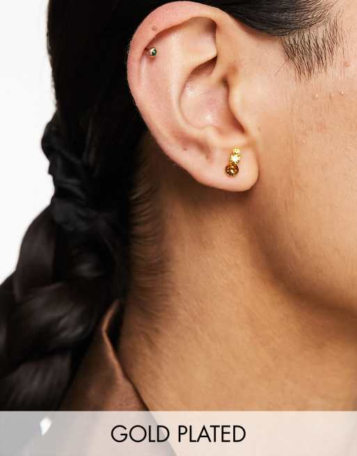 Kingsley Ryan – Pozłacane kolczyki z trzema kamieniami w kolorze bursztynowym