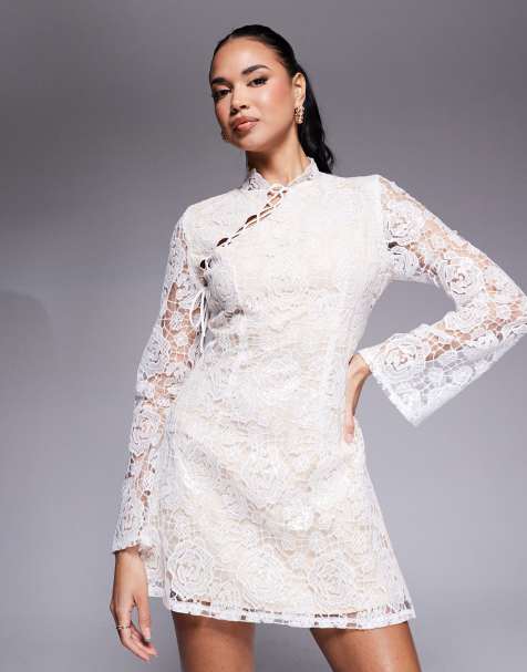 Rare London – Biała asymetryczna koronkowa sukienka mini ze sznurowaniem