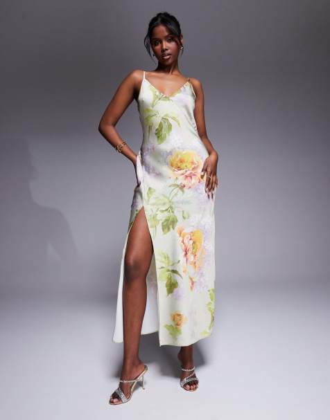 ASOS Edition – Sukienka midi na ramiączkach z niesymetrycznym dołem w paski