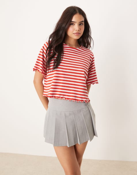 Good American – Krótki szary T-shirt z dekoltem w kształcie litery V