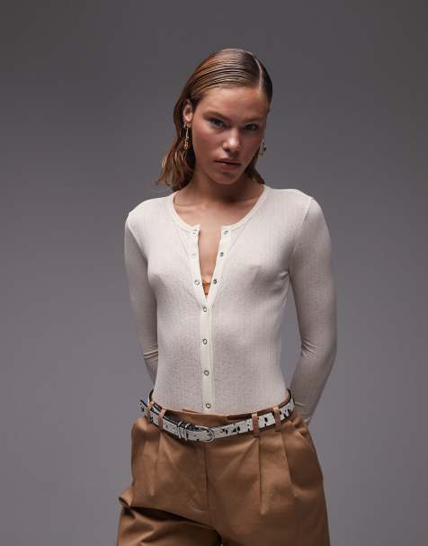 WIĘCEJ KOLORÓWASOS DESIGN – Fakturowane prążkowane body w kolorze ecru z guzikami