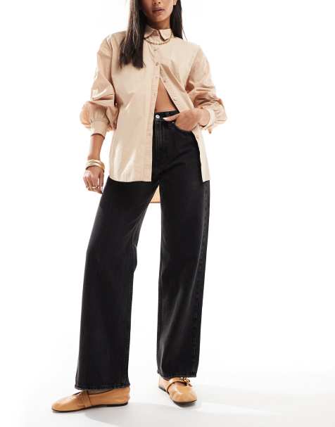 Topshop – Column – Czarne kolumnowe jeansy ze średnim stanem