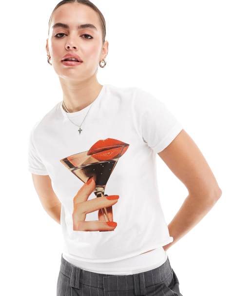Abercrombie & Fitch – Biały T-shirt z krótkimi rękawami i napisem Hugo Spritz