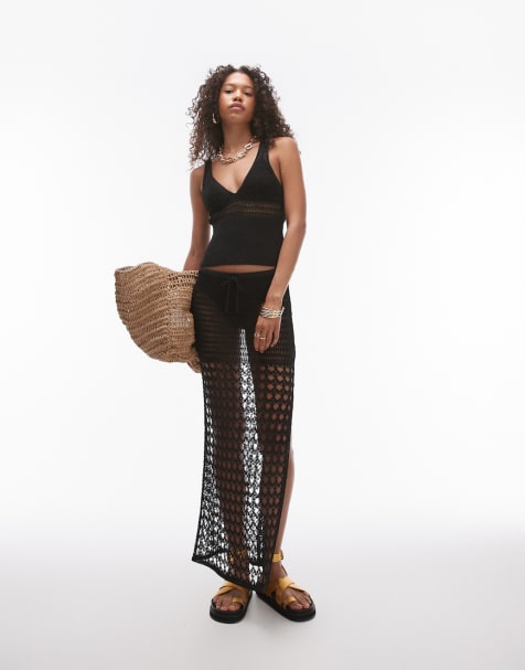 MIESZAJ I ŁĄCZARRANGE Curve – Prześwitujący cekinowy T-shirt i czarna spódnica maxi