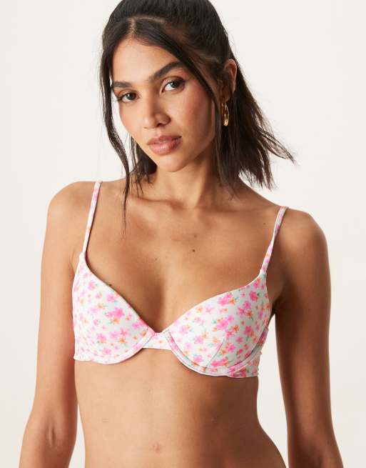 Kulani Kinis – Flamingo Flora – Jasnoróżowa góra od bikini z fiszbinami w kwiatowy wzór