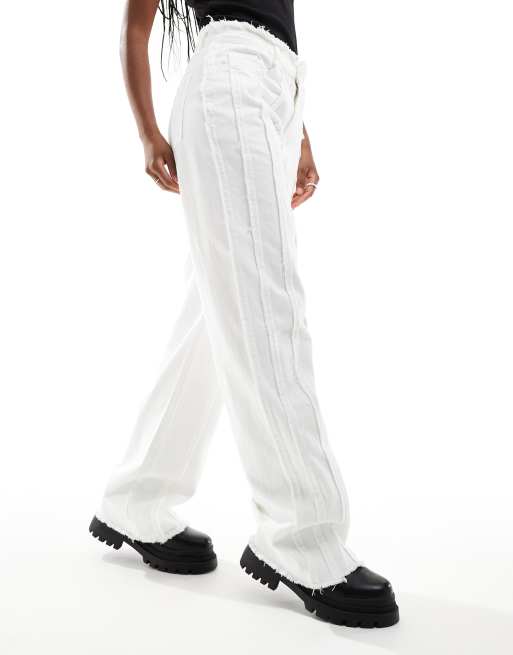 Kyo The Brand – Białe jeansy ze średnim stanem i postrzępionym brzegiem