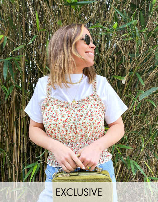 Labelrail x Collyer Twins – Krótki top z marszczeniem w drobny kwiatowy wzór