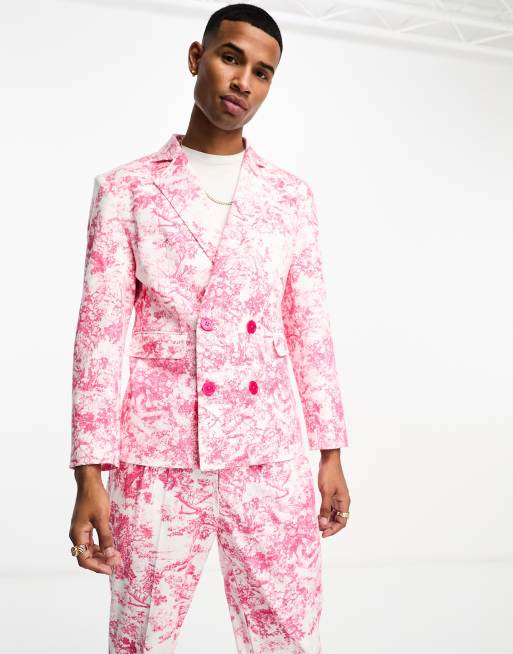 Labelrail x Stan & Tom – Różowa dopasowana marynarka dwurzędowa we wzór, część zestawu