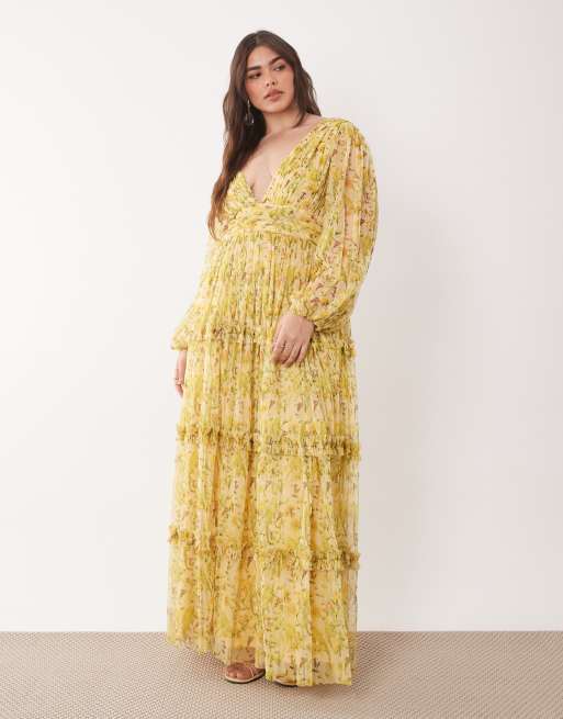 Lace & Beads Plus – Lydia – Żółta sukienka maxi w kwiatowy wzór
