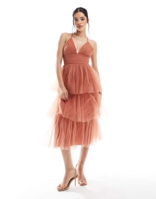 Lace & Beads Bridesmaid – Odette – Sukienka midaxi w kolorze terakoty