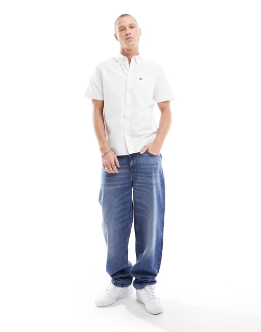 Lacoste – Biała klasyczna koszula oxford z krótkimi rękawami
