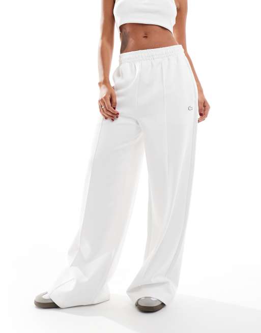 Lacoste – Białe joggersy z szerokimi nogawkami