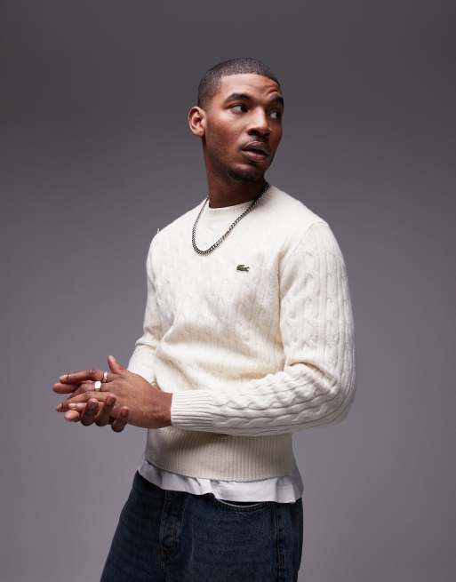Lacoste – Biały sweter z dzianiny o warkoczowym splocie