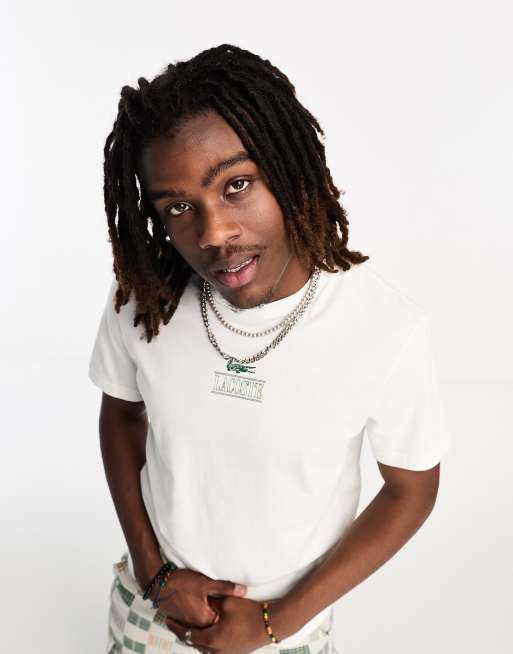 Lacoste – Biały T-shirt z logo na piersi