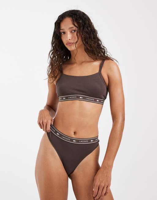 Lacoste – Brązowy zestaw z logo: braletka i stringi