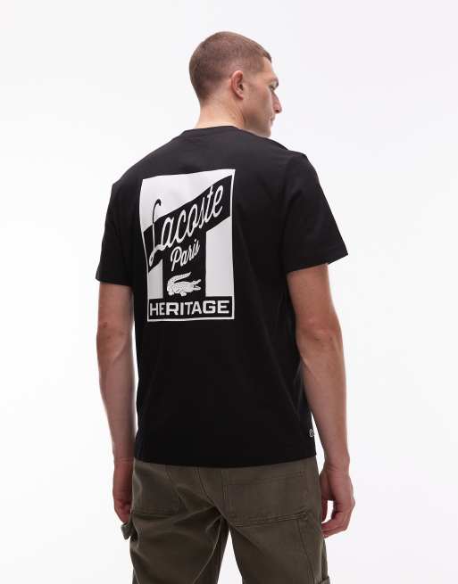 Lacoste – Czarny T-shirt z nadrukiem na plecach