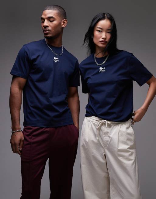 Lacoste – Granatowy T-shirt z logo z przodu