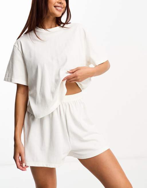 Lacoste – Loungewear – Biała piżama z grafiką: T-shirt i szorty