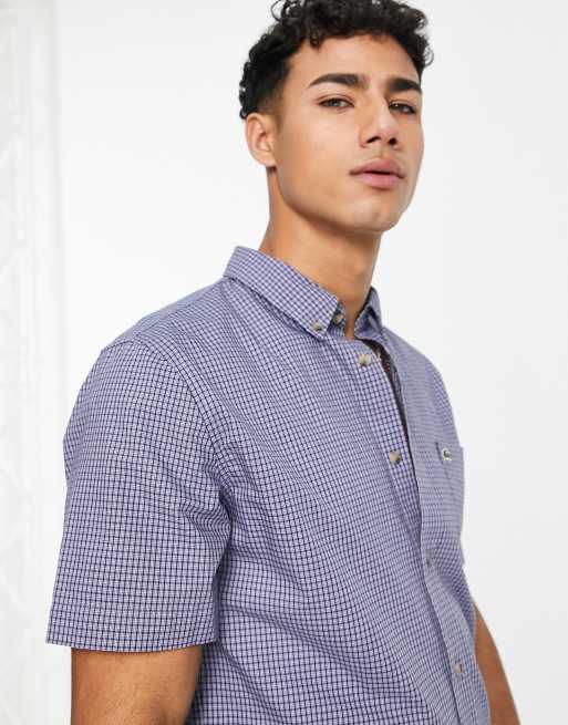 Lacoste – Niebieska koszula z krótkimi rękawami w kratę