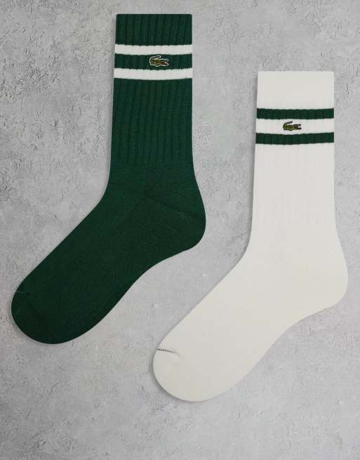 Lacoste – Zestaw 2 par sportowych skarpetek w kolorach białym i zielonym