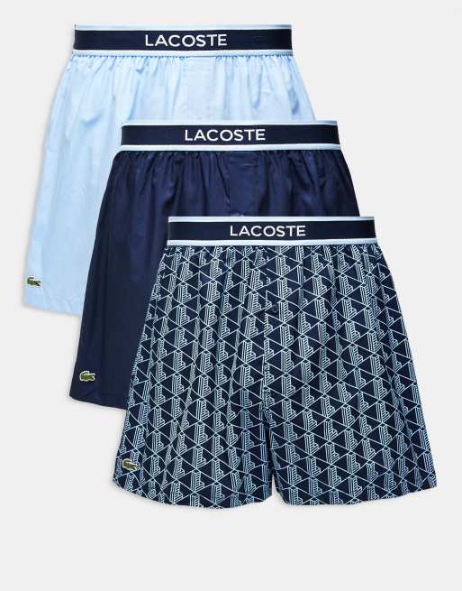 Lacoste – Zestaw 3 par bokserek z tkaniny w kolorze niebieskim/ we wzór z monogramem