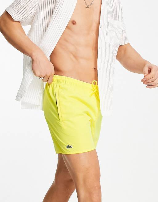 Lacoste – Żółte szorty kąpielowe z małym logo