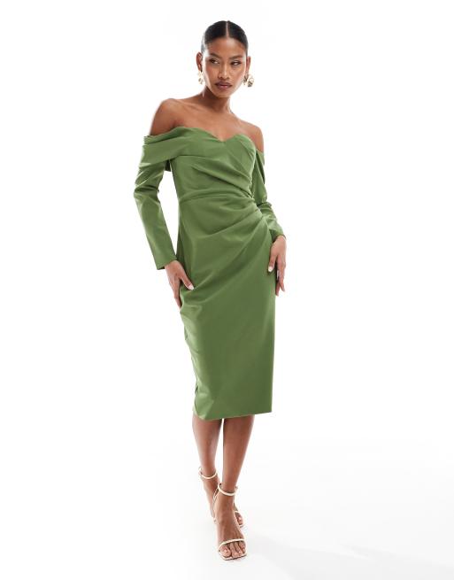 Lavish Alice – Zielona sukienka midi z dekoltem bardot w kształcie serca