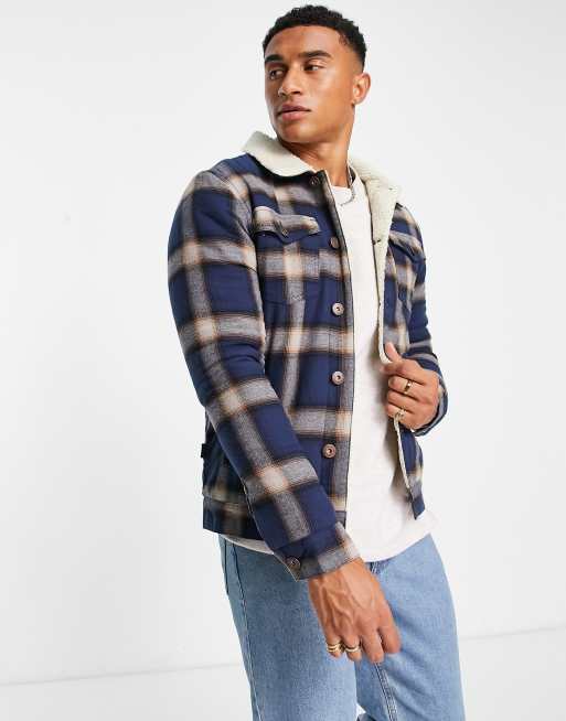 Le Breve – Niebieska kurtka w kratkę z kołnierzykiem i podszewką z kożuszka