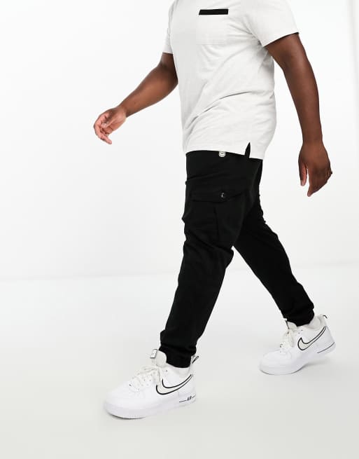 Le Breve Plus – Czarne spodnie bojówki ze ściągaczami