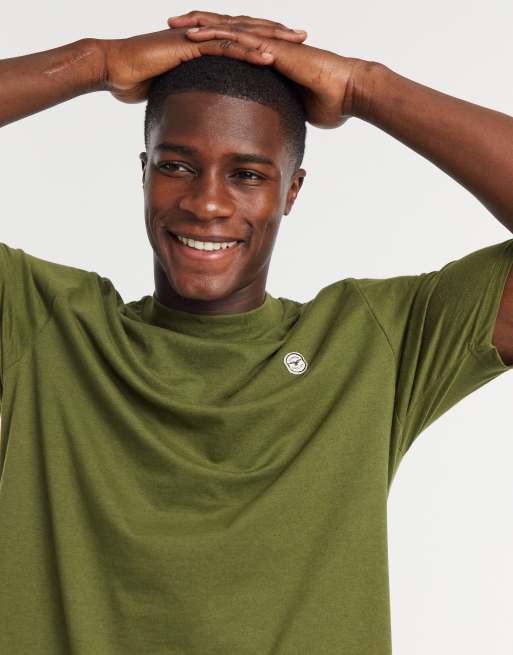 Le Breve – T-shirt w kolorze khaki z golfem, o wydłużonym fasonie