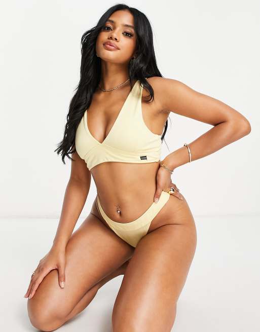 Le Buns – Blair – Żółte bawełniane mocno wycięte figi z podwyższonym stanem – YELLOW