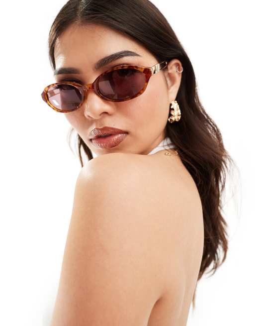 Le Specs – Lunita – Szylkretowe okulary przeciwsłoneczne z owalnymi oprawkami w brązowym kolorze