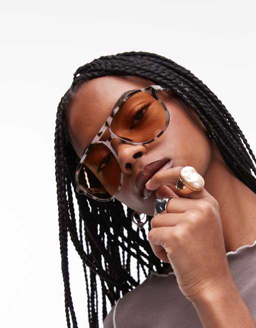 Le Specs – Tragic Magic – Okulary przeciwsłoneczne aviator z szylkretowymi oprawkami i bursztynowymi szkłami