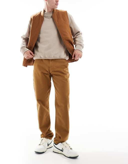 Lee – Brązowe, płócienne chinosy o luźnym kroju w stylu roboczym