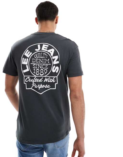 Lee – Czarny luźny T-shirt z logo na plecach