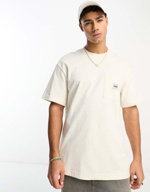 Lee – Luźny T-shirt w kolorze ecru z logo na kieszeni