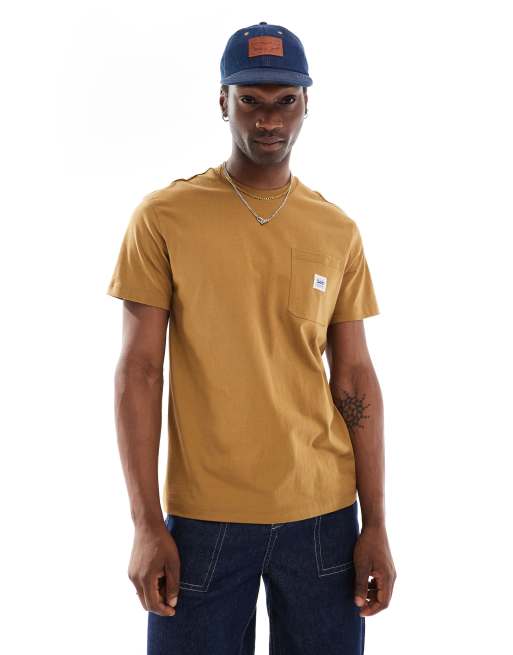 Lee – Workwear – Jasnobrązowy T-shirt o luźnym kroju z kieszenią z logo