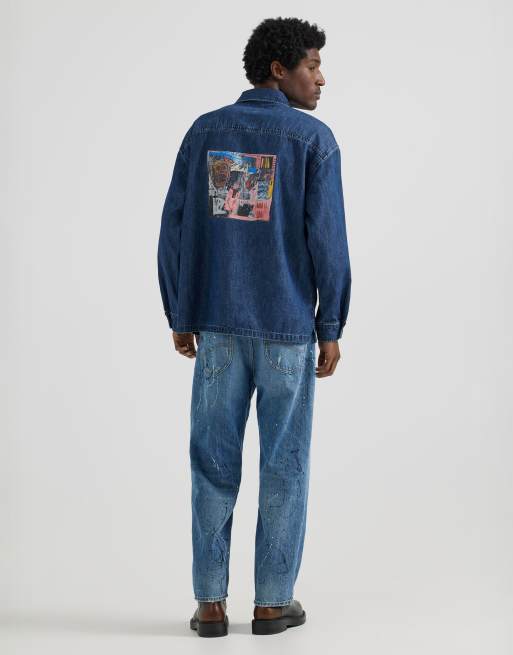 Lee x Jean-Michel Basquiat – Niebieska zakładana przez głowę koszula jeansowa typu worker z nadrukiem na plecach